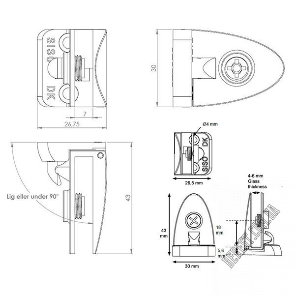 Петля під скло SISO BADGE для вузького профілю 15.06.251