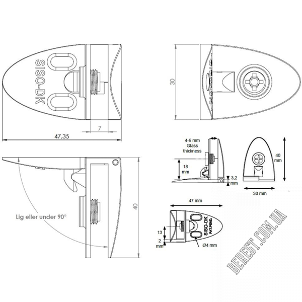 | Вид аксесуара або петлі | Для скляних дверей |