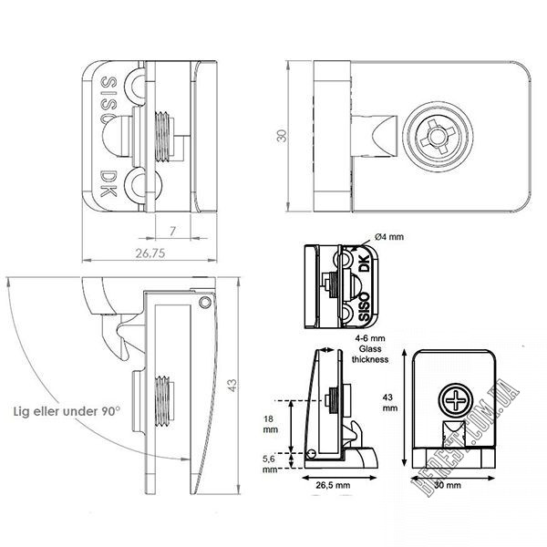 | Вид аксесуара або петлі | Для скляних дверей |