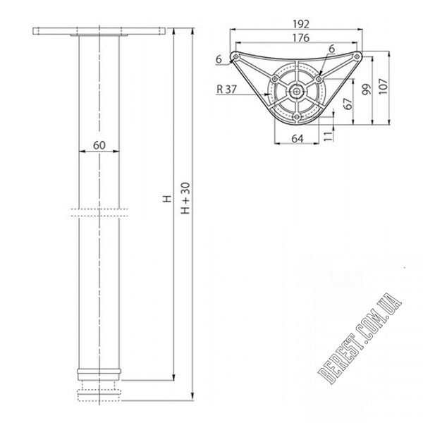 Меблева опора GTV 60х710 мм Хром (А)